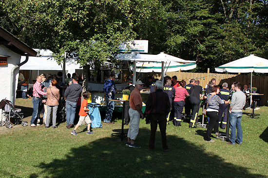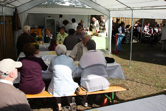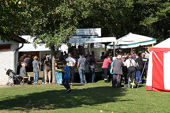 Obwohl die meisten der Besucher sowie die Organisatoren am nächsten Tag früh zur Arbeit mussten, blieben sehr viele bis zum frühen Abend. Dann gingen die Vorräte an Speisen und Getränken zur Neige. Am Ende des Tages gab es außer Pommes Frites und Säften nichts mehr. Dank des Wetters und gut gelaunter Kirmesgäste ging ein wunderschönes Fest zu Ende. [ Seite 1 | Seite 2 | Seite 3 ] Zurück zur Seite "Dorfgemeinschaft"