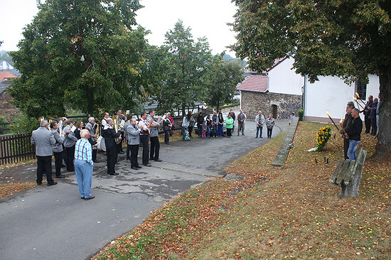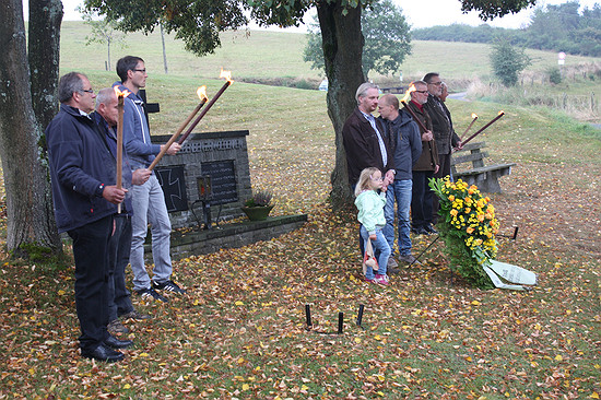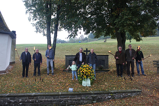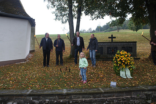 Der Rest ist Schweigen. Die letzten Gäste gingen erst um 7:00 Uhr am nächsten Morgen nach Hause. Und in Einzelfällen wurde zwischendurch auch mal jemand mit Hilfe einer Schubkarre ins traute Heim verfrachtet. Anders gesagt, war die Stimmung bestens. SonntagAm nächsten Morgen (oder für viele am gleichen Morgen) fand traditionell in der Sierscheider Maternuskapelle ein Gottesdienst und anschließend eine Kranzniederlegung am Denkmal für die Gefallenen des Dorfs statt.
