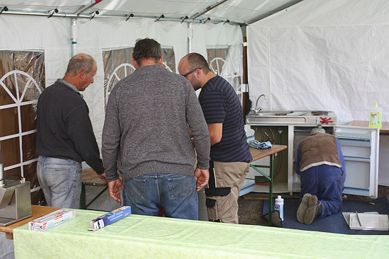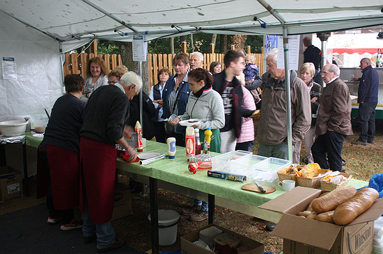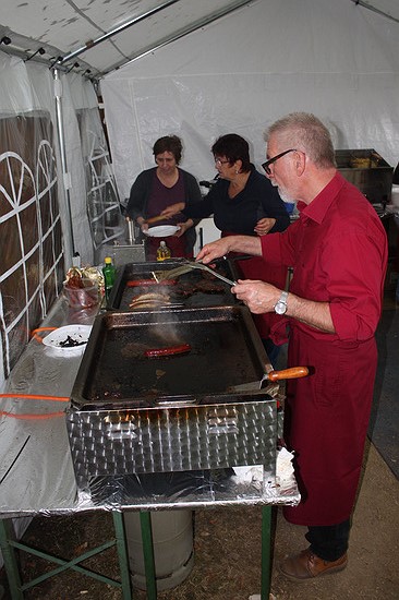 Sierscheider Kirmes 2016Erste kulinarische Kirmes in Sierscheid17. und 18.09.2016Guter Besuch und Feierlaune mit extremer Ausdauer in SierscheidDas Wetter, immer ein Thema bei einer Freiluftveranstaltung. So war es noch in der Woche des Aufbaus heiß und trocken. Aber pünktlich zum Kirmessamstag schlug es um und abends regnete es. Doch das war offensichtlich für die zahlreichen Besucherinnen und Besucher kein Grund, zu Hause zu bleiben. Und Sierscheid hatte sich Neues auf die Fahnen geschrieben: Es sollte eine kulinarische Kirmes werden. So lag der Gedanke nahe, mehr aus der heimischen Jagd anzubieten. Die schon berühmte Hirschgulaschsuppe wurde daher mit extra hergestellten Wildwürsten ergänzt. Daneben gab es aber natürlich auch "normale" Steaks, Pommes, Salate, selbst gemachte Kuchen und so weiter. Samstag