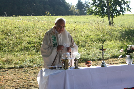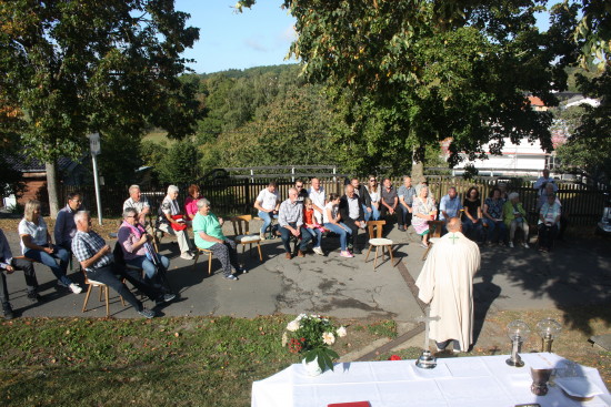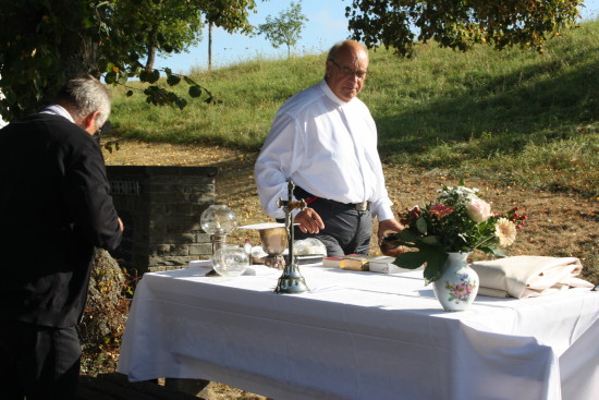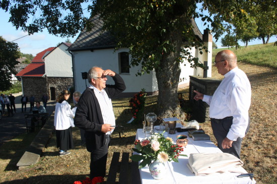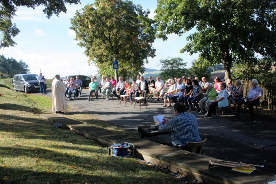 Sonntag Morgen Traditionell beginnt der Sierscheider Kirmessonntag mit einem Gottesdienst, der dank des spätsommerlichen Wetters draußen stattfinden konnte.