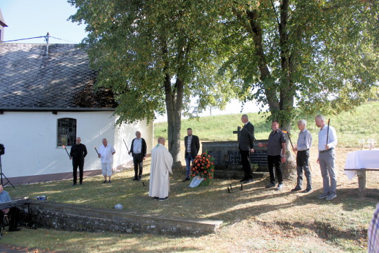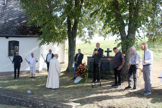 Nach der Messe wurde den Gefallenen der beiden Weltriege gedacht und zu deren Ehren ein Kranz niedergelegt.