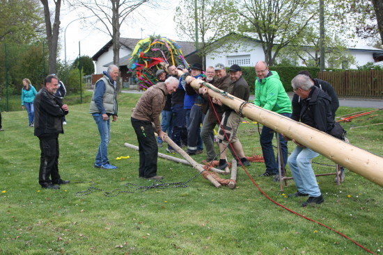 Aufstellen des Maibaums und Maifest 2022Nach zweijähriger Coronapause haben wir endlich wieder am 30.04. einen Maibaum aufstellen können. [ Seite 1 | Seite 2 ] Nach zwei Jahren ohne Maibaum und ohne Maifest ging es diesmal mit einem kapitalen Maibaum zur Sache. Ein kleiner Baum wäre dem Neubeginn nach der Pause nicht angemessen gewesen.