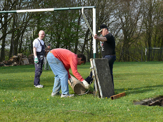 Das Fußballtor spielt ebenfalls eine tragende Rolle. Oder zumindest eine stützende.