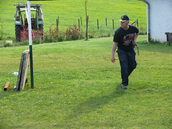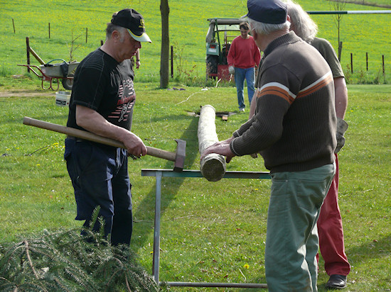 Der Maibaum muss gut fixiert werden, schließlich soll er ja eine ganze Weile den Dröschplatz schmücken.