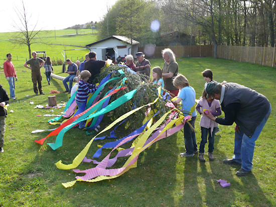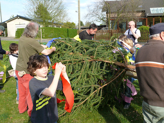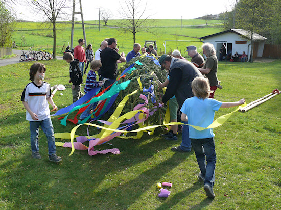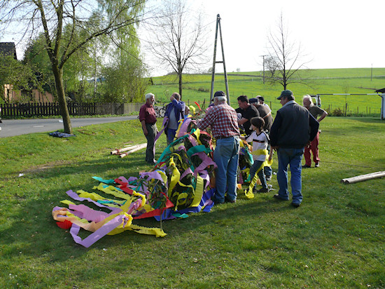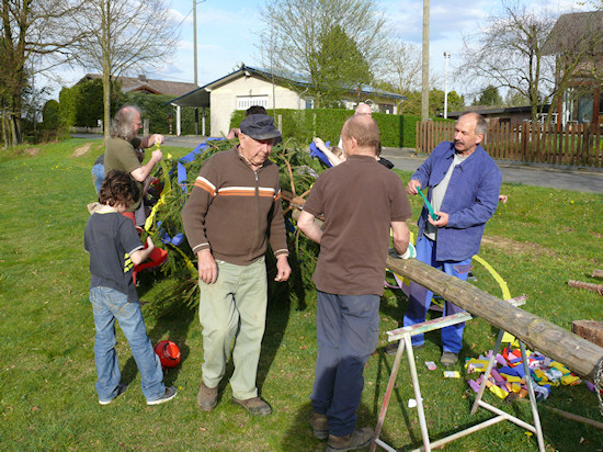 Nächster Schritt: Schmücken des Maibaums.