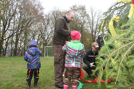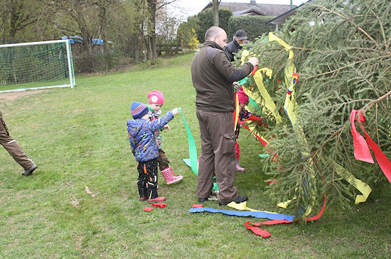 Schon die Kleinsten halfen, den Maibaum zu schmücken.