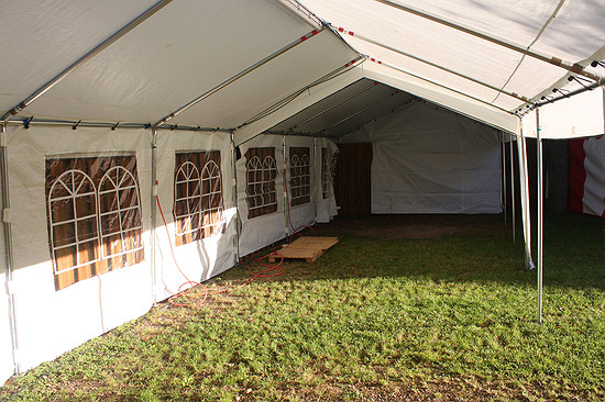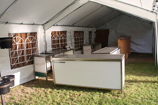 Der Toilettenwagen ist aufgestellt.