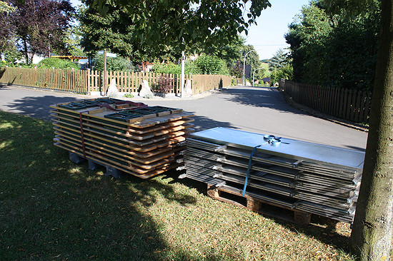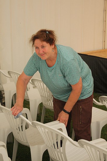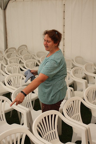 Stühle und Bänke werden geputzt.