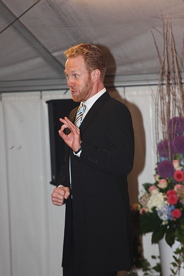 Als Hans-Georg Wimmer das Missgeschick von Thomas Bonni mit dem Anzug zum Besten gab, erntete er viel Gelächter.