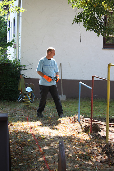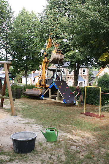 Erneuerung des Sierscheider SpielplatzesAugust 2013Laut Beschluss des Ortsgemeinderates sollte der Spielplatz in Sierscheid erneuert werden. Für dieses Projekt hatte das RWE eine großzügige Spende zur Verfügung gestellt. Dafür wurden neue Spielgeräte, Sand und ein den aktuellen Sicherheitsbestimmungen entsprechendes Tor angeschafft. Die Arbeit wurde in Eigenleistung erbracht und der Rest der Kosten aus dem Gemeindehaushalt zur Verfügung gestellt. Zunächst wurde ein Gutachten des Technischen Überwachungsvereins (TÜV) eingeholt, um bestehende Sicherheitsmängel aufzudecken und um dafür Sorge zu tragen, dass bei der Erneuerung die Sicherheit der Kinder oberste Priorität genießt. Nach der Erneuerungsarbeit kann sich der Spielplatz wieder sehen lassen und entspricht auch den aktuellen Sicherheitsbestimmungen. Ab sofort können sich unsere Kinder dort ohne Gefahr bewegen, spielen und Spaß haben. Vorbesprechung der Arbeiten.