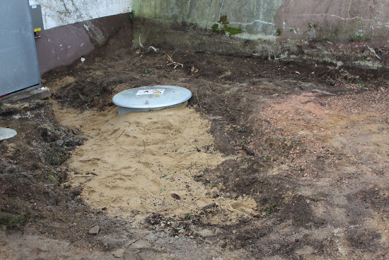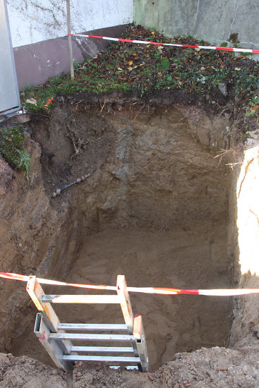 Die Grube zur Aufnahme des Flüssiggas-Erdtanks