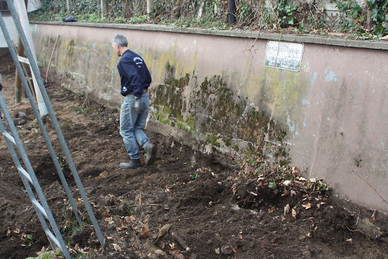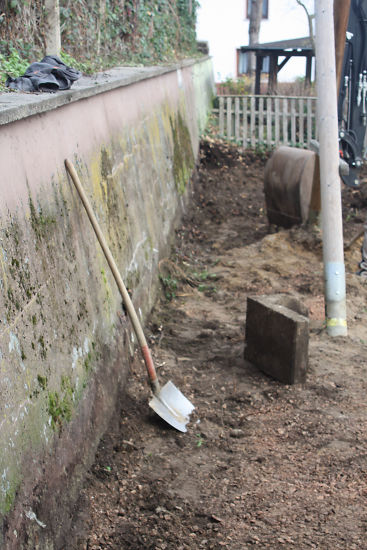 Die Einfassung des Grünstreifens entlang der Stützmauer muss aus Sicherheitsgründen entfernt werden.