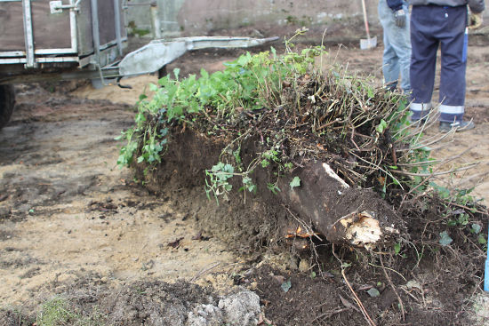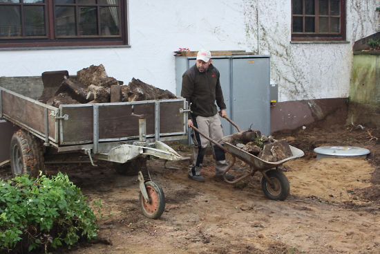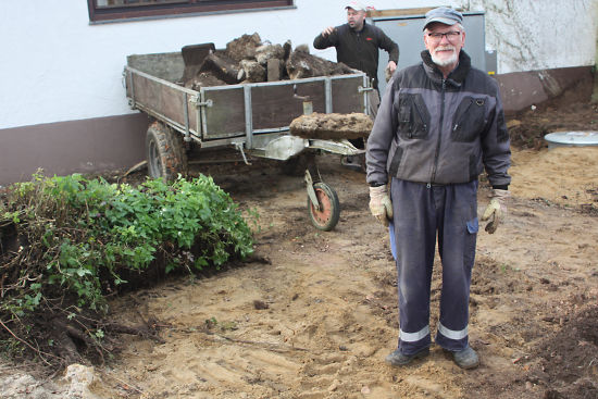 Neben Beton und alten Randsteinen fällt auch das eine oder andere Grünzeug den Aufräumarbeiten zum Opfer.