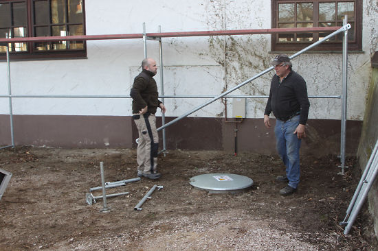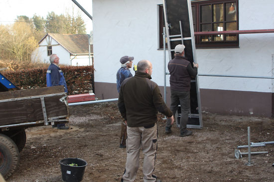 Soweit ist der Stand der Arbeiten bis Ende 2020. Trotz der coronabedingten Einschränkungen ist bereits ein gutes Teil der Erneuerungsarbeiten abgeschlossen. Aber es liegt noch weit mehr vor uns. 24.02.2021 Immer noch hat Corona das Land und die Welt im Griff. Aber die Arbeit muss auch irgendwie weitergehen. Als nächsten Schritt ist die Fassade des Gemeindehauses und der Anstrich der Stützmauer geplant. Für das Gemeindehaus muss dazu erst einmal ein Gerüst aufgestellt werden.