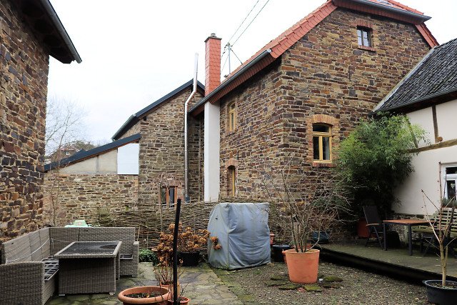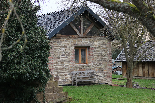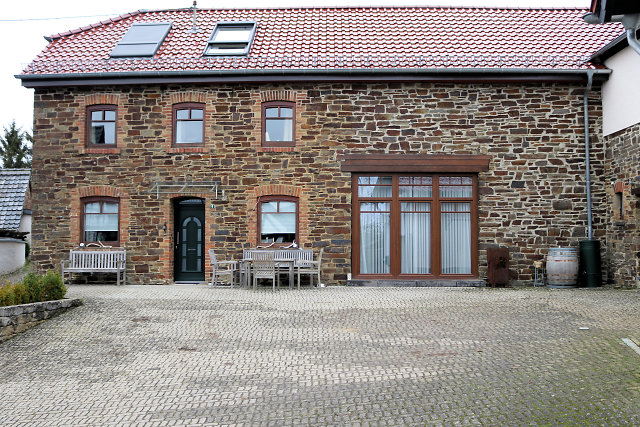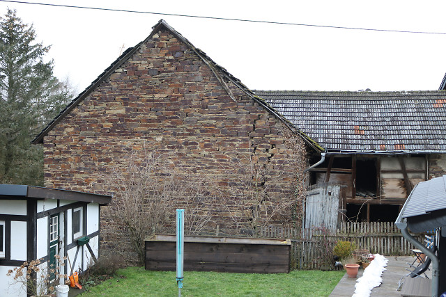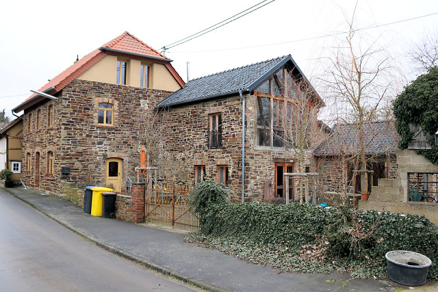 sehenden Fachwerkhaus gehört dieser Anbau aus Bruchstein.