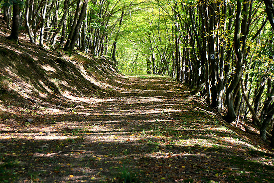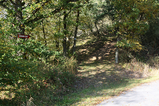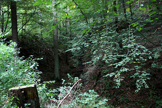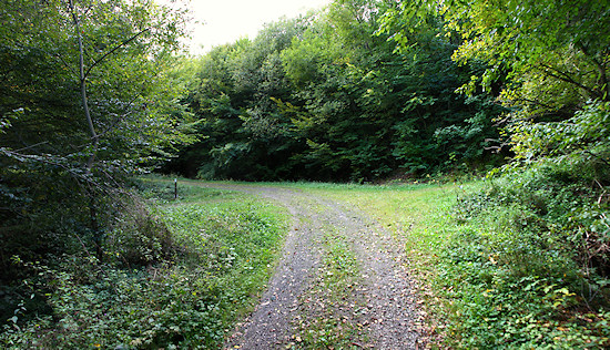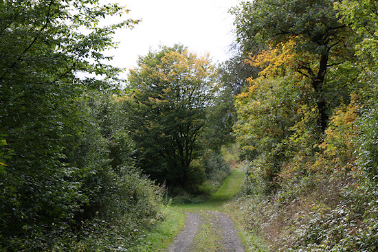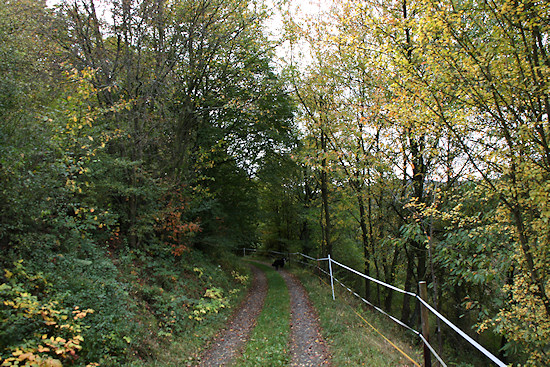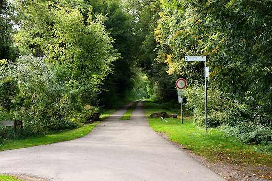 Der Weg überquert hier einen alten Eisenbahntunnel, ohne dass man diesen sehen kann. Bleibt man unten auf dem Radweg, muss man dort durch.