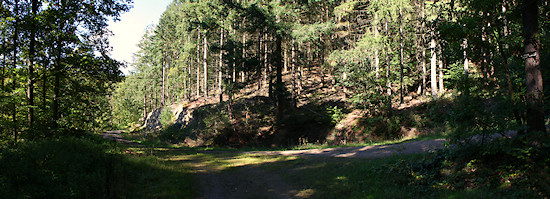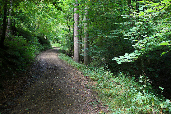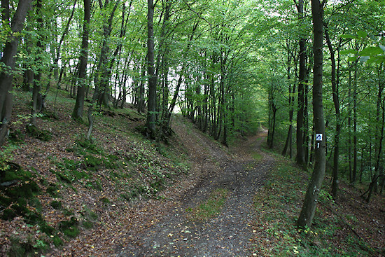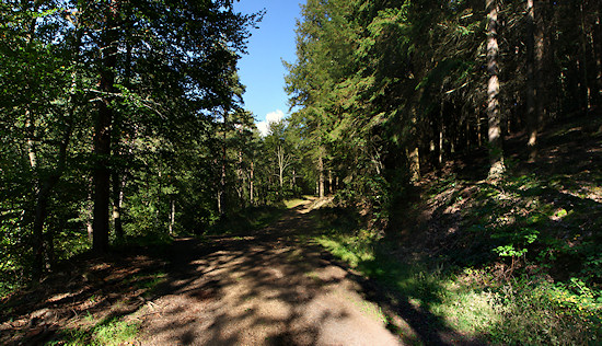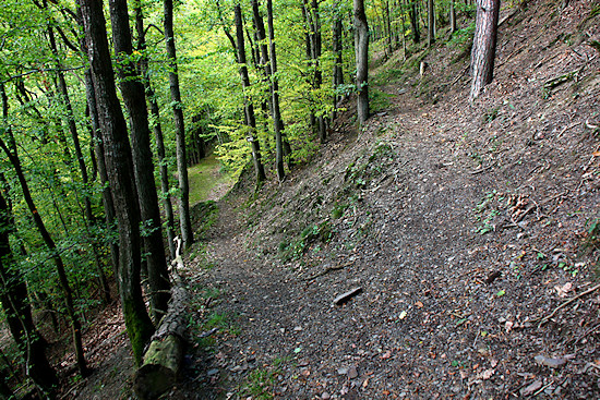 Ziemlich unvermittelt geht es dann wieder abwärts und in den Wald.