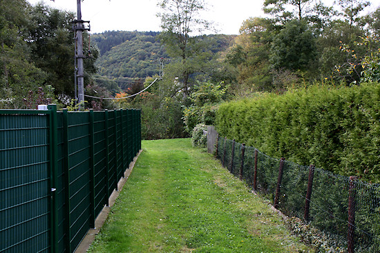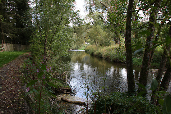 Hinten am Ende des Jägerzauns gehen wir nach rechts und treffen dort auf die Ahr.