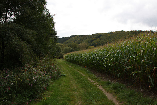 Hier kann man, wenn man möchte, noch einmal nach links zur Ahr hinablaufen. Während meiner Wanderung stand auch dort ein Meer aus Mais.