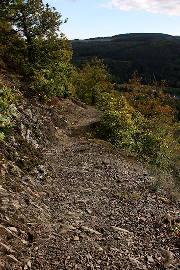 Während der Weg nach links in den Ahrtalweg mündet, halten wir uns geradeaus.
