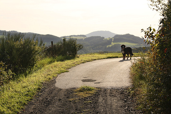 Auch bei Hundebesitzern ist diese Strecke sehr beliebt. Im Hintergrund der Aremberg.