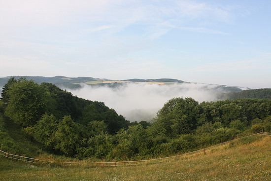 Besonders schön ist es hier oben, wenn das Tal und die etwas tiefer gelegenen Berghänge noch im Frühnebel liegen.