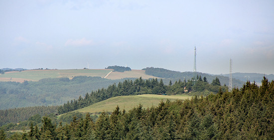 Weiter rechts von der Reifferscheider Höhe kommt die vielleicht markanteste Landmarke der Eifel in das Blickfeld: Der Aremberg.