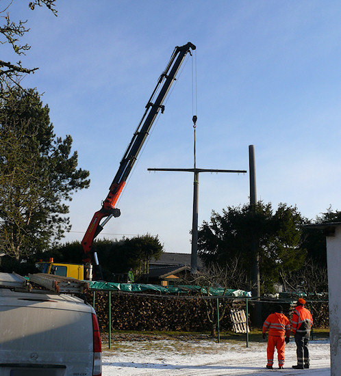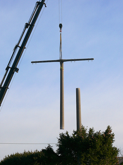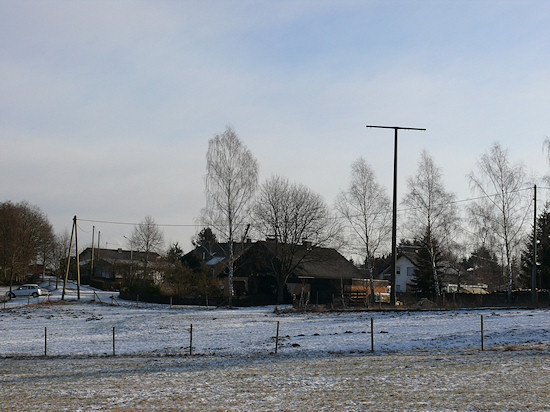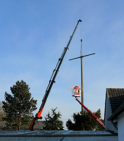Vor dem Abbau des letzten Mastes am Ortsrand.