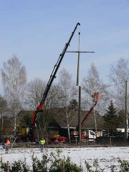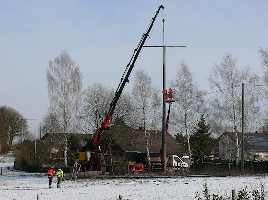 Abbau der Mittelspannungsmasten03.02.2012Das RWE ließ die schon funktionsuntüchtigen Masten abbauen, wodurch das Erscheinungsbild des Dorfs deutlich gewonnen hat. Die Kabel waren bereits am 15.06.2011 nach Inbetriebnahme der neuen unterirdischen Kabeltrasse nach Liers entfernt worden.