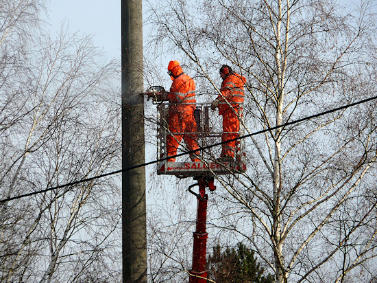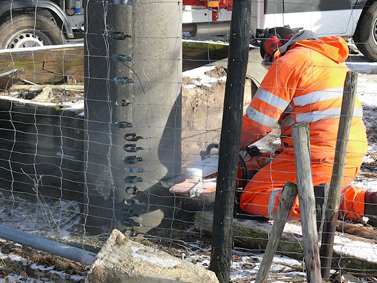 Dann wurde auch noch am Fuß des Mastes gesägt.
