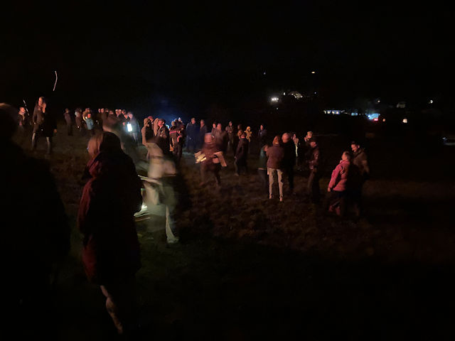 Martinszug und Martinsfeuer 2025mit gemütlichem Beisammensein und Verlosung im GemeindehausSamstag, 15. November 2025 Großer Andrang herrschte in diesem Jahr. Das Wetter war zwar in den letzten Tagen schöner als ausgerechnet an diesem Samstag. Aber zumindest zu Beginn war es tgrocken und dazu ungewöhnlich mild. Da störte es auch nur wenig, dass es ausgerechnet anfing zu regnen, als wir am Martinsfeuer standen. Schließlich wartete ja das trockene Gemeindehaus. Wie in jedem Jahr sicherte die Freiwillige Feuerwehr unter Wehrführer Tobias Lussi den Umzug. Das Blasorchester Insul sorgte für die gekonnte musikalische Begleitung, ohne die ein Martinszu nicht vorstellbar ist.