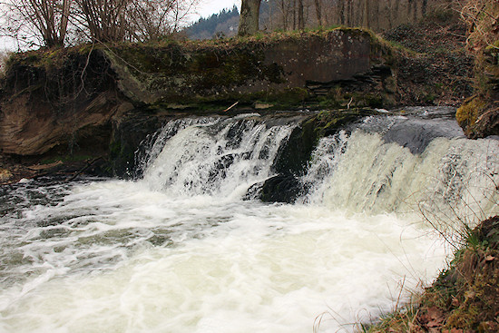 Als "Fischtreppe" zur Umgehung des Nette-Wasserfalls gebauter kleiner Kanal. Am Ufer sieht man (natürlich) Schiefer.